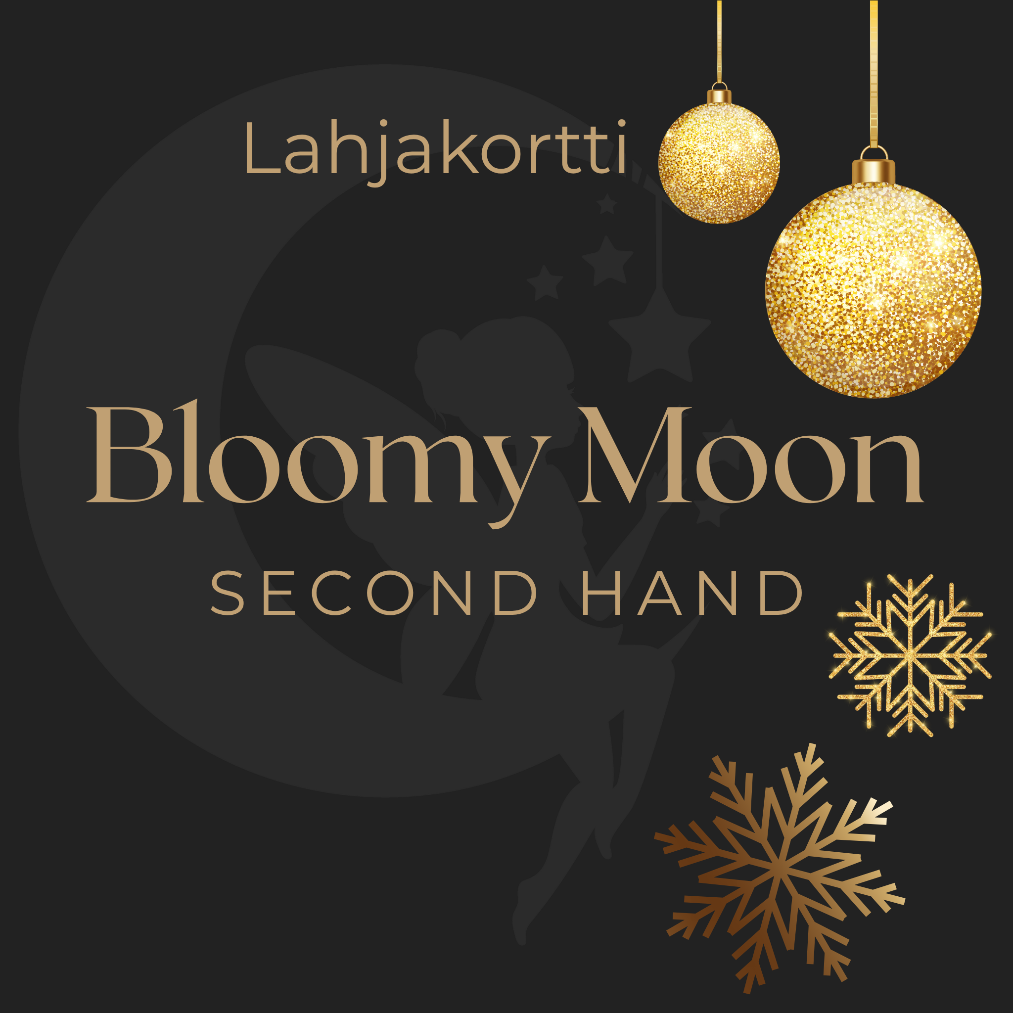 Lahjakortti Bloomy Moon -verkkokauppaan antaa saajalle vapauden valita mieleisiään second hand aarteita ilman uuden hintaa ja ympäristökuormaa!